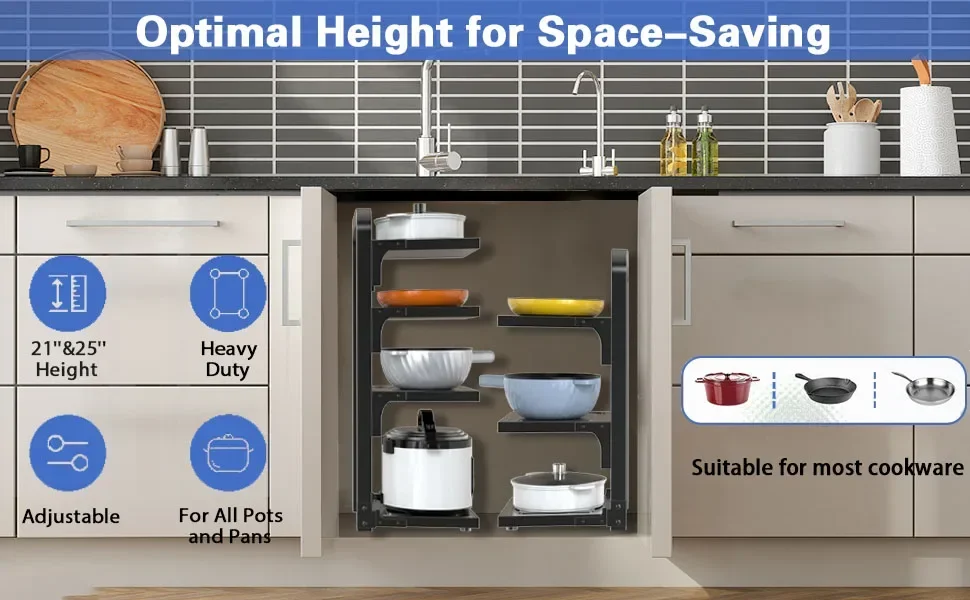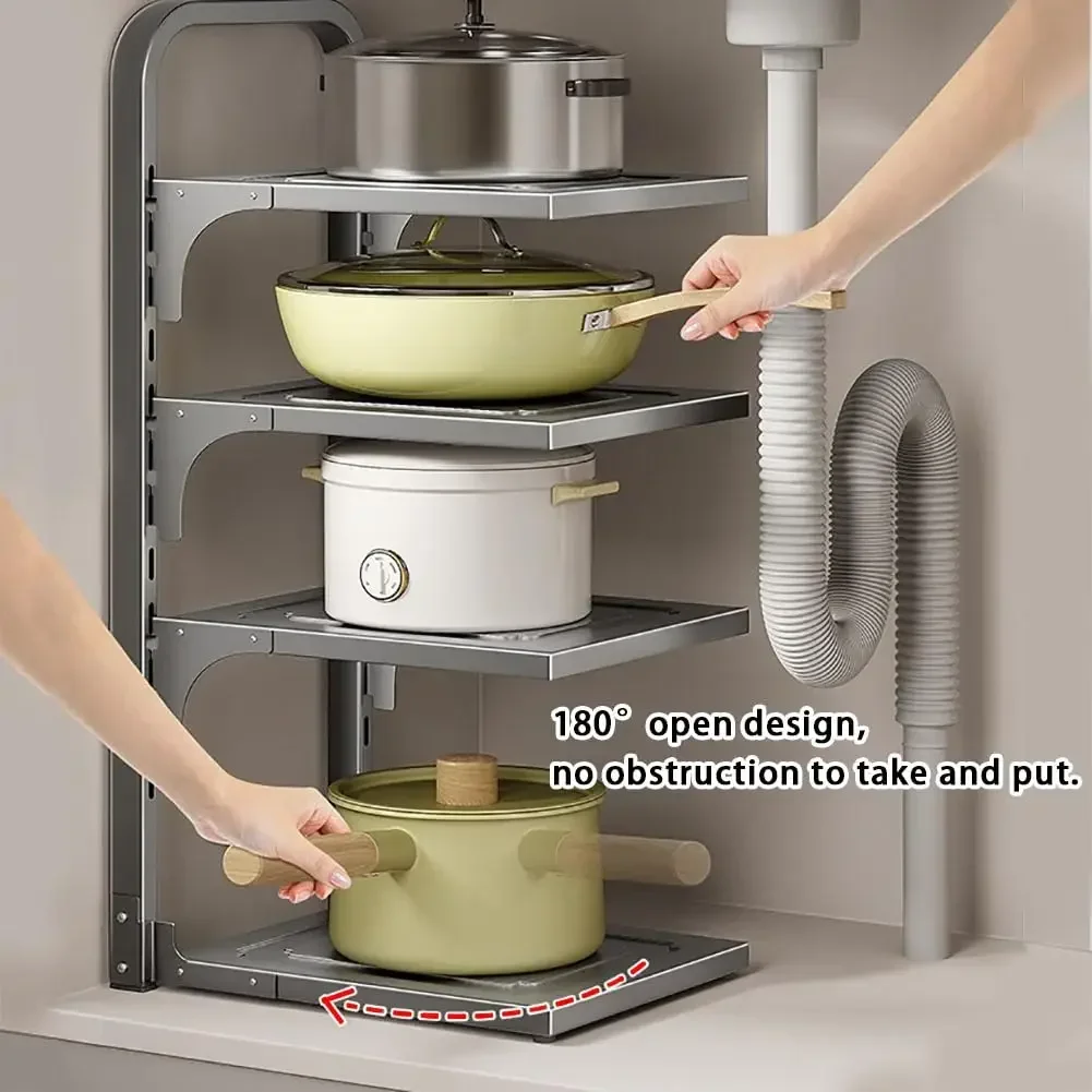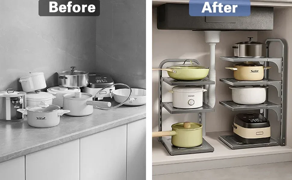 Adjustable Multi-Layer Kitchen Shelves - Under Sink Pot and Pan Storage Rack for Organized Bowls and Cookware