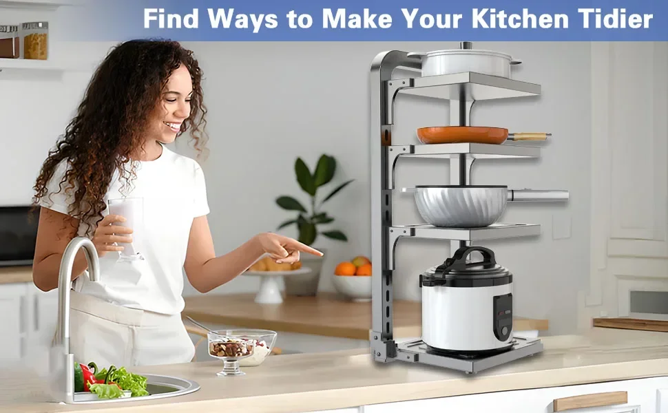 Home Storage Kitchen Accessories Adjustable Pot Rack Organizer Cabinet Storage Kitchen Organizer Pot Lid Rack Cookware Holders